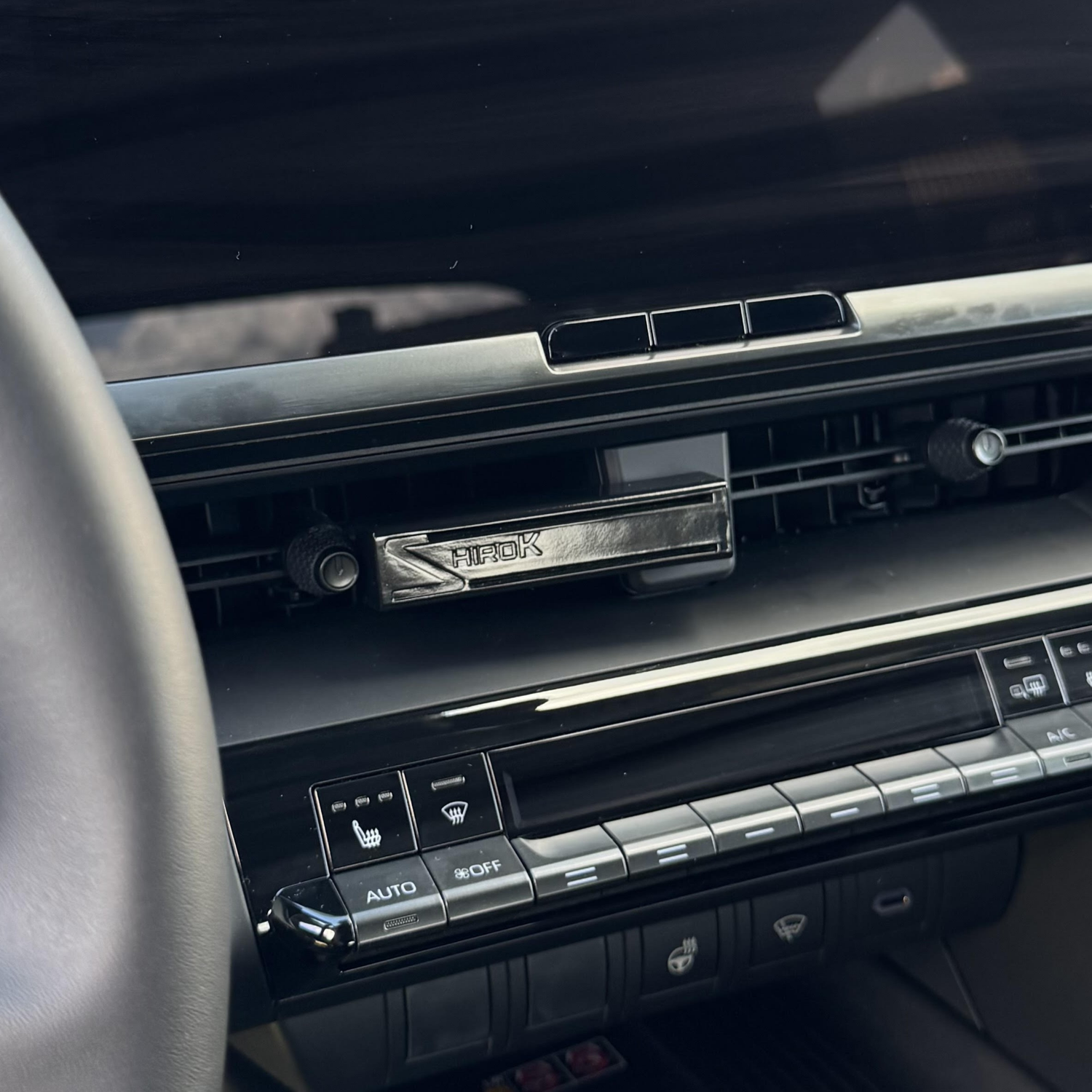 Der elegante schwarze Klavierlack und das graue finish passt sich jedem Innenraum an. kreiert, um sich stilvoll in jedes Fahrzeug zu integrieren.